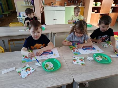 На занятии дети ознакомились с одним из видов декоративно-прикладного творчества - техникой «декупаж», закрепили навыки работы с элементами для аппликации (салфетки, умение создавать композицию, сочетая элементы по цвету и рисунку, правильно наклеивать элементы, намазывая клей кистью поверх элементов).