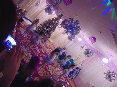 Новогодний утренник «Проделки Морского Царя» проходил весело, с элементами волшебства и сюрпризами. Были на нем Морской царь и Квакуня, русалки и богатыри, снежные феи с морозными ленточками и даже приземлялись лунатики на космической тарелке. Главный гость праздника Дед Мороз помог освободить Снегурочку и наколдовал в сундуке Морского царя подарки для ребят.