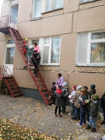 После сигнала громкого оповещения, воспитатели осуществляли организованный выход воспитанников в колонну по два человека через соответствующие выходы за: 1 корпус 8 минут, 2 корпус 10 минут.