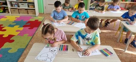 Чтобы лучше прочувствовать атмосферу филимоновского промысла, дошколята попробовали себя в роли мастеров. Воспитатель предложила им раскрасить бумажные силуэты филимоновских игрушек, используя яркие цвета и традиционные узоры.