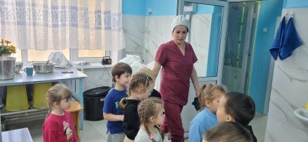 Сегодня дети из старшей группы " Светофорики " отправились в увлекательное путешествие по миру профессий. Их путь лежал на кухню, где трудятся повара. Ребята с интересом слушали рассказы о работе поваров, о трудностях и тонкостях приготовления блюд.