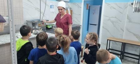 После познавательной экскурсии ребята поблагодарили поваров за их труд и за то, что они готовят для них вкусные обеды, завтраки и ужины.