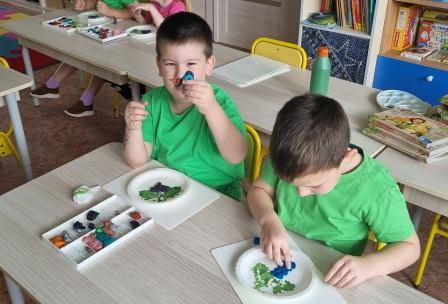 Маленькие художники проявили свою творческую натуру, создавая из пластилина ягоды винограда, а листочки изображали с помощью настоящих листьев, делая оттиски. Их работы — это не просто рисунки, это маленькие шедевры, которые отражают их видение мира.