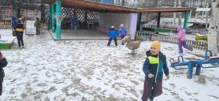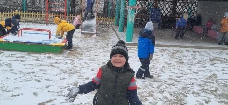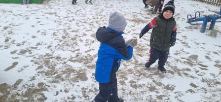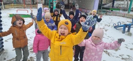 В глазах детей горел неподдельный интерес и радость. Хоть ещё совсем не много было снега, но ребята собирали первый снег с песочницы и лавочек и лепили снежки.