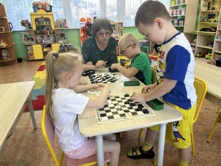 Но это занятие несёт сомнительную пользу для интеллекта и никогда не заменит живого общения со сверстниками. Поэтому сегодня в нашем дошкольном образовательном учреждении педагоги активно приобщают ребят к играм в шашки.