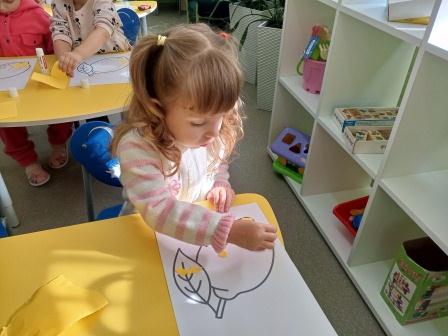 Дети очень любят выполнять творческие работы в виде обрывной аппликации. Её техника заключается в том, чтобы передать изображение с помощью обрывков бумаги. Ребёнок заполняет контуры рисунка небольшими кусочками бумаги, подбирая необходимые цвета, отрывая небольшие элементы от большого листа цветной бумаги. В процессе такой аппликации у детей задействована вся мускульная часть кисти, что, несомненно, развивает мелкую моторику. Создание картины с помощью обрывной аппликации напоминает сбор пазла, а следовательно, влияет на развитие внимания, мышления. Создание поделки из небольших деталей формирует у ребёнка такой необходимый навык, как усидчивость.