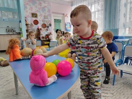 В младшей группе прошло интересное занятие математике «Большие и маленькие мячики для кукол». На занятии ребята учились различать величину (большой – маленький); учились подбирать мячи по величине и цвету, закреплялось знание основных цветов (красный, желтый, синий, зеленый).