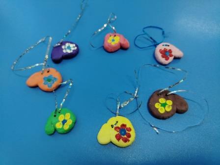 Работу начали с создания коллекции рукавичек, которые лепили из глины, а когда изделия высохли - раскрасили яркими гуашевыми красками.