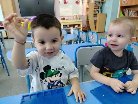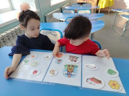 На занятии воспитанники учились находить одинаковые предметы и выделять один из них. У ребят формировалось знание понятий «один», «много», «мало».