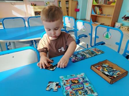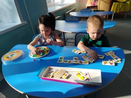 В течении дня мы играем в игры с заводными и сюжетными игрушками, с кубиками и пирамидкой, которые поднимают настроение, мозаикой и пазлами, которые развивают усидчивость, внимание и мышление, тренируют моторику пальцев. Недавно ребята познакомились с новой игрой «Подбери предметы для Великана и Гномика». В этой игре ребята знакомятся с понятиями «большой», «маленький».