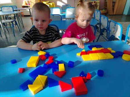 Вот и мы с детьми младшей группы «Солнышко» с раннего утра играем в дидактические игры, в ходе чего дети закрепляют цвета и формы, продолжают развивать мелкую моторику рук, учатся ориентироваться в пространстве и на плоскости. Совместные движения приносят детям много радости, а общение в процессе выполнения различных движений складывается значительно быстрее, что приобщает ребенка к коллективу, к деятельности вместе.
