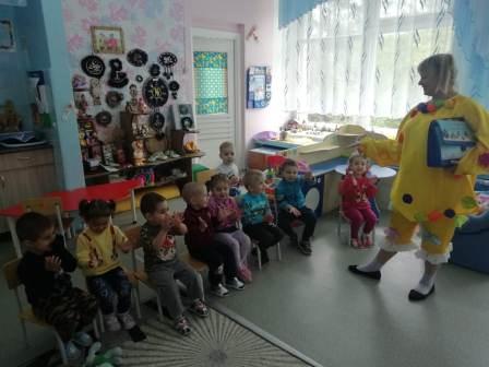 Малышей группы «Солнышко» пришли поздравить красавица «Осень» и Веселушка – Хохотушка. Герои веселили детей, играли с ними в забавные игры и загадывали загадки. Ребята показали и рассказали гостям, чем они занимаются в детском саду. Гостям очень понравились малыши и они подарили им замечательные подарки! Веселушка – рюкзачок с альбомами, карандашами, красками, а Осень – корзинку с осенними дарами и хорошими пожеланиями!