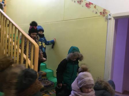 Эвакуация прошла быстро - 10 минут - от начала подачи сигнала до сбора в помещении укрытия МДОБУ.На месте сбора по табелю посещаемости воспитатели групп провели перекличку и отчитались ответственному о численности групп и 100% эвакуации детей.