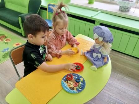 В завершении ребята слепили калачики, и пригласили на чай куклу Катю.