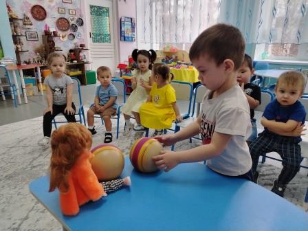 В младшей группе прошло интересное занятие математике «Большие и маленькие мячики для кукол». На занятии ребята учились различать величину (большой – маленький); учились подбирать мячи по величине и цвету, закреплялось знание основных цветов (красный, желтый, синий, зеленый).