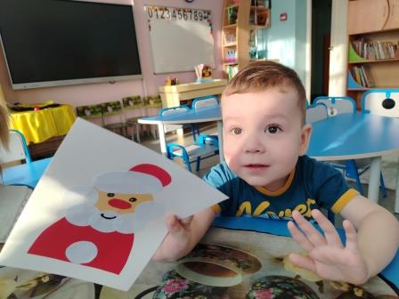 Перед занятием с детьми была проведена беседа, в ходе которой ребята узнали о самом волшебнике, кто он такой, чем он занимается, на какой праздник приходит к людям. Малыши еще не знают о том, что у дедушки есть День рождения, и вот такая возможность приобщить их проявлению добрых чувств в атмосфере праздничного волшебства. Ребята посмотрели иллюстрации, слушали стихотворение о Дедушке Морозе, отгадывали загадки. Какой же день рождения без подарка? Мы вспомнили как празднуем дни рождения именинников в группе, дарим подарки, водим хороводы, а ведь дедушке тоже хочется праздника и волшебства, поэтому дружно приступили к работе. На занятии малыши учились пользоваться клеем и цветной бумагой, учились аккуратно наносить клей на детали портрета и приклеивать к основанию картона с помощью салфетки. Во время работы помогала малышам, подбадривала их и хвалила. У всех ребят получились замечательные портреты Деда Мороза, которые мы оформили в выставку!